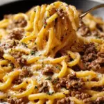 Ein einfaches und herzhaftes Rezept für cremige Pasta mit Rinderhackfleisch und aromatischem Knoblauch – perfekt für Familienessen und gemütliche Abende.