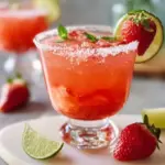 Eine erfrischende, alkoholfreie Mocktail-Margarita mit saftigen Erdbeeren und spritziger Limette, perfekt für heiße Sommertage.