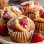 Köstliche und saftige Erdbeer Muffins mit einer erfrischenden Zitronen- und Vanillenote, perfekt für jede Gelegenheit.