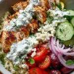 Die Griechische Hähnchen-Tzatziki-Bowl ist weit mehr als nur ein Gericht – sie ist eine Einladung auf eine geschmackliche Reise durch die mediterrane Küche. Egal, ob Sie ein schnelles Abendessen kochen oder ein unvergessliches Essen für die Familie kreieren möchten, diese Bowl erfüllt all Ihre Wünsche. Die geschmackliche Harmonie zwischen dem saftigen Hähnchen, dem cremigen Tzatziki und dem knackigen Gemüse verspricht ein kulinarisches Erlebnis, das Sie unwiderstehlich finden werden. Nehmen Sie sich etwas Zeit, um diese Geschmacksexplosion in Ihre Küche zu bringen. Geniessen Sie jeden Bissen und lassen Sie sich von den Aromen verzaubern!