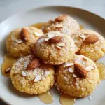 Zarte Honig-Mandel-Grieß-Kekse, goldbraun gebacken, mit einer knusprigen Außenschicht und buttrigem Innenleben.