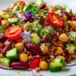Ein erfrischender und nahrhafter Salat aus Kichererbsen, Kidneybohnen und knackigem Gemüse, perfekt für jeden Anlass.