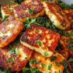 Ein köstlicher Snack aus knusprig gebratenem Halloumi, perfekt gewürzt und serviert mit frischen Kräutern.
