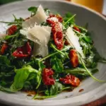 Ein erfrischender Salat, der die Schärfe von Rucola mit der Süße getrockneter Tomaten und der Cremigkeit von Parmesan kombiniert.