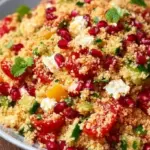 Ein erfrischender Couscous Salat mit Feta, Kirschtomaten, Paprika und Granatapfelkernen – perfekt für heiße Sommertage!