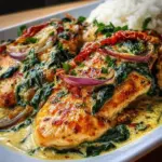 Dieses Rezept für Spinat Parmesan Hähnchen überzeugt durch seine Einfachheit und seine leckeren, befriedigenden Aromen. Es vereint das zarte Hühnchen mit dem cremigen Spinat und der salzigen Note des Parmesan zu einer unvergleichlichen Mischung, die sowohl als Alltagsgericht als auch als elegantes Abendessen glänzt. Seine zarte Konsistenz und die bunte Farbenpracht auf dem Teller lassen es besonders einladend erscheinen und bringen selbst hektische Wochentage zum Strahlen.